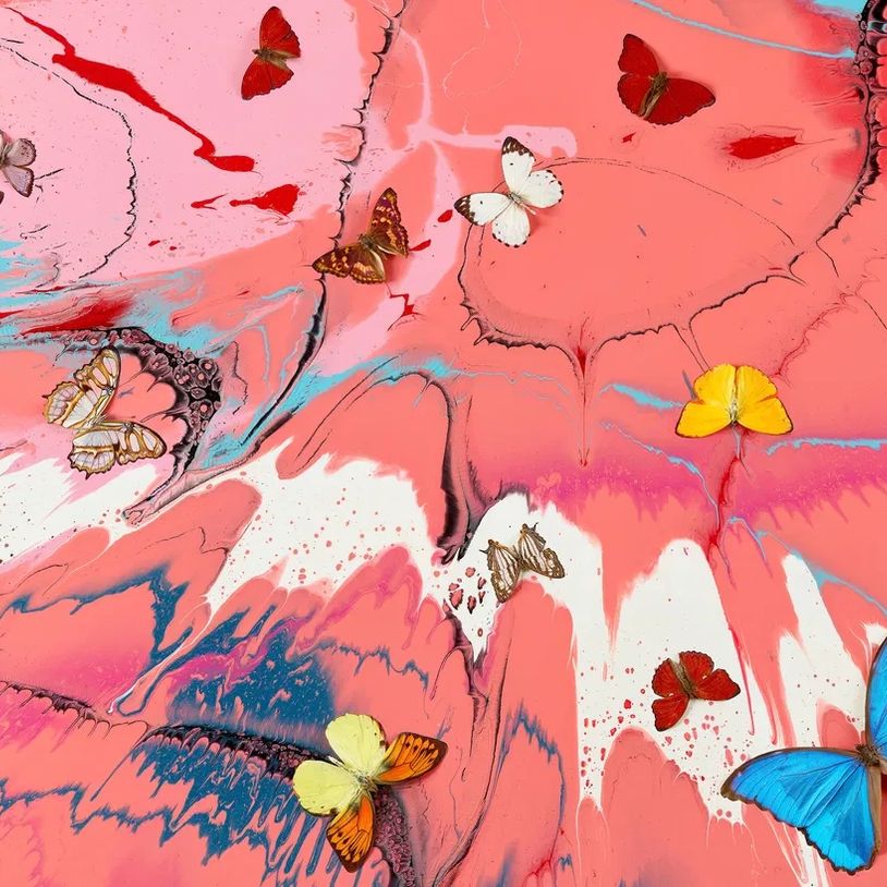 The Dreams by Damien Hirst is a striking new series that features 40 original works on canvas and 8 limited edition prints based on the paintings. In The Dreams, delicate butterflies appear suspended in motion, juxtaposed against a background of swirling, vibrant colours that seem to explode across the canvas in bold and unpredictable patterns.
