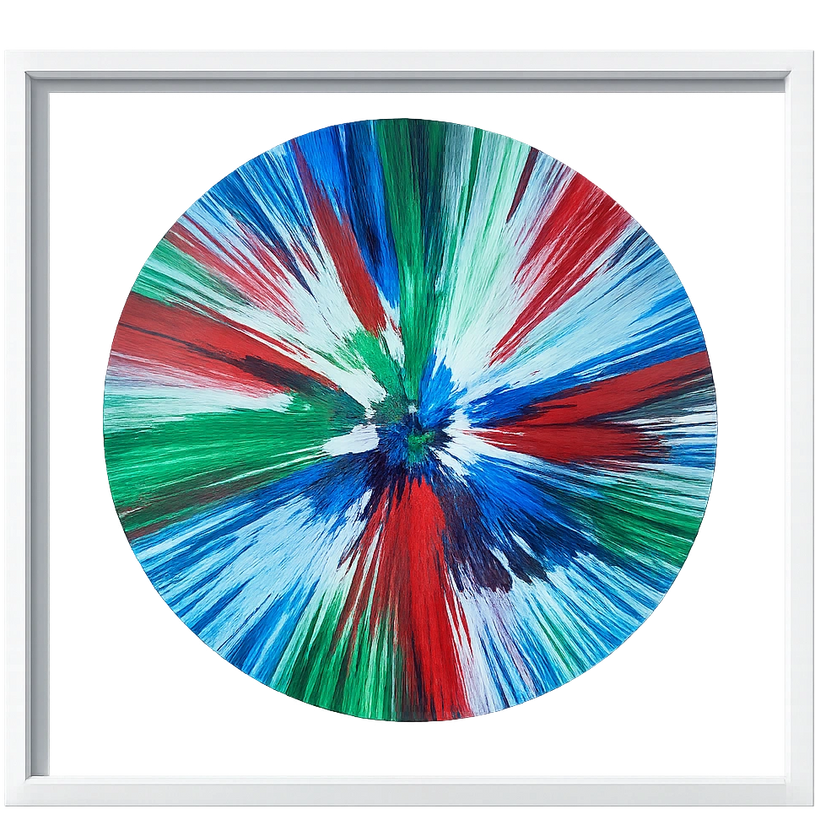 The 'Spin' paintings, made in 2009 for the PinchukArtCentre, are a celebration of colour, motion and chance. Created by splattering paint onto a spinning canvas, they symbolise the chaotic and random nature of life. Hirst's intention was to challenge the traditional methods of painting, focusing on chance and the physical act of creation, leading to unique and unpredictable results.